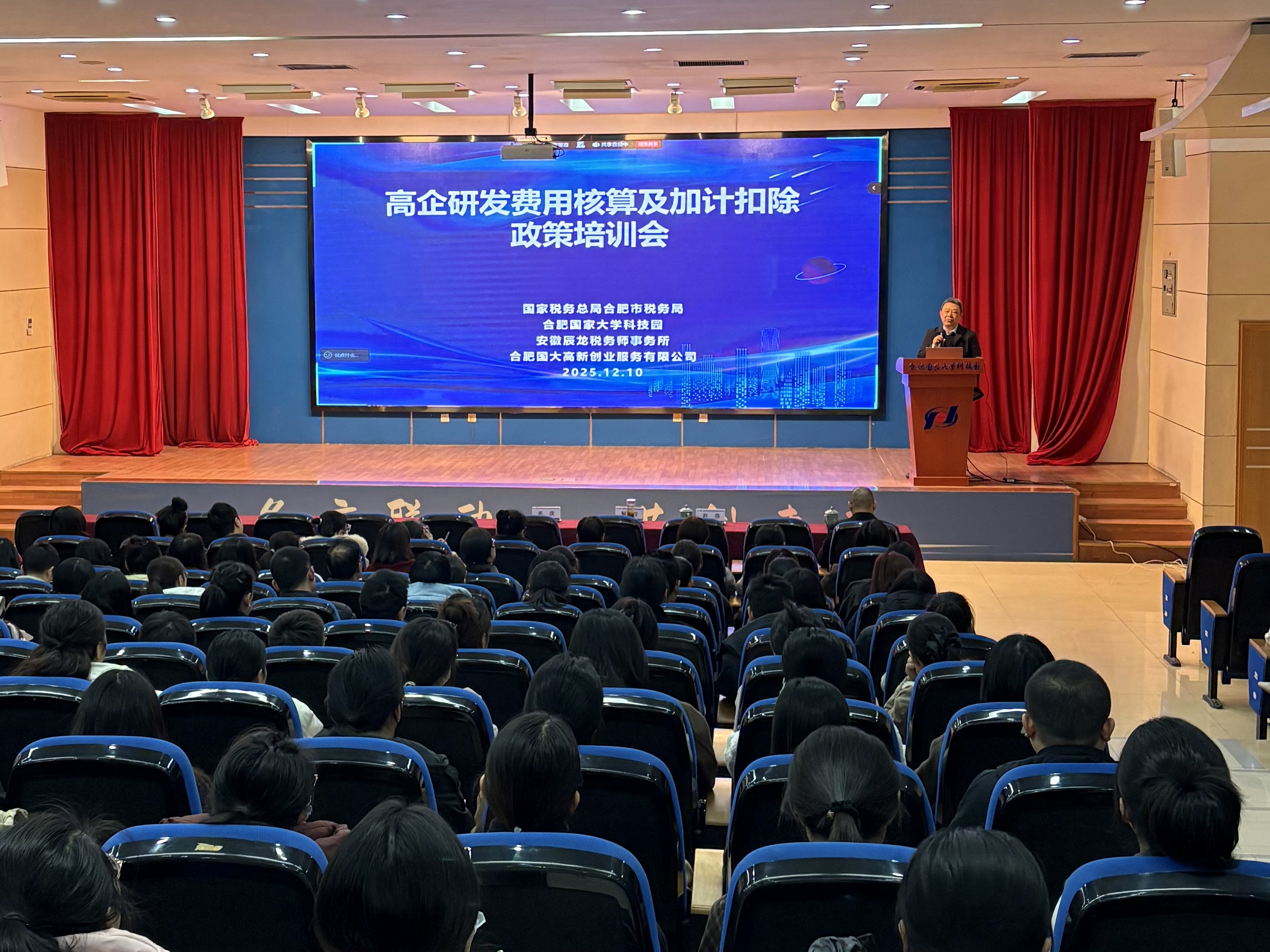 为进一步做好园区企业高企培育工作,帮助企业更加全面了解研发费加计扣除相关政策,做好高企申报前期规划,赋能园区企业高质量发展,2025年12月10日下午,合肥国家大学科技园联合国家税务总局合肥市税务局、安徽辰龙税务师事务所和合肥国大高新创业服务有限公司成功举办高企研发费用核算及加计扣除政策专场培训。
