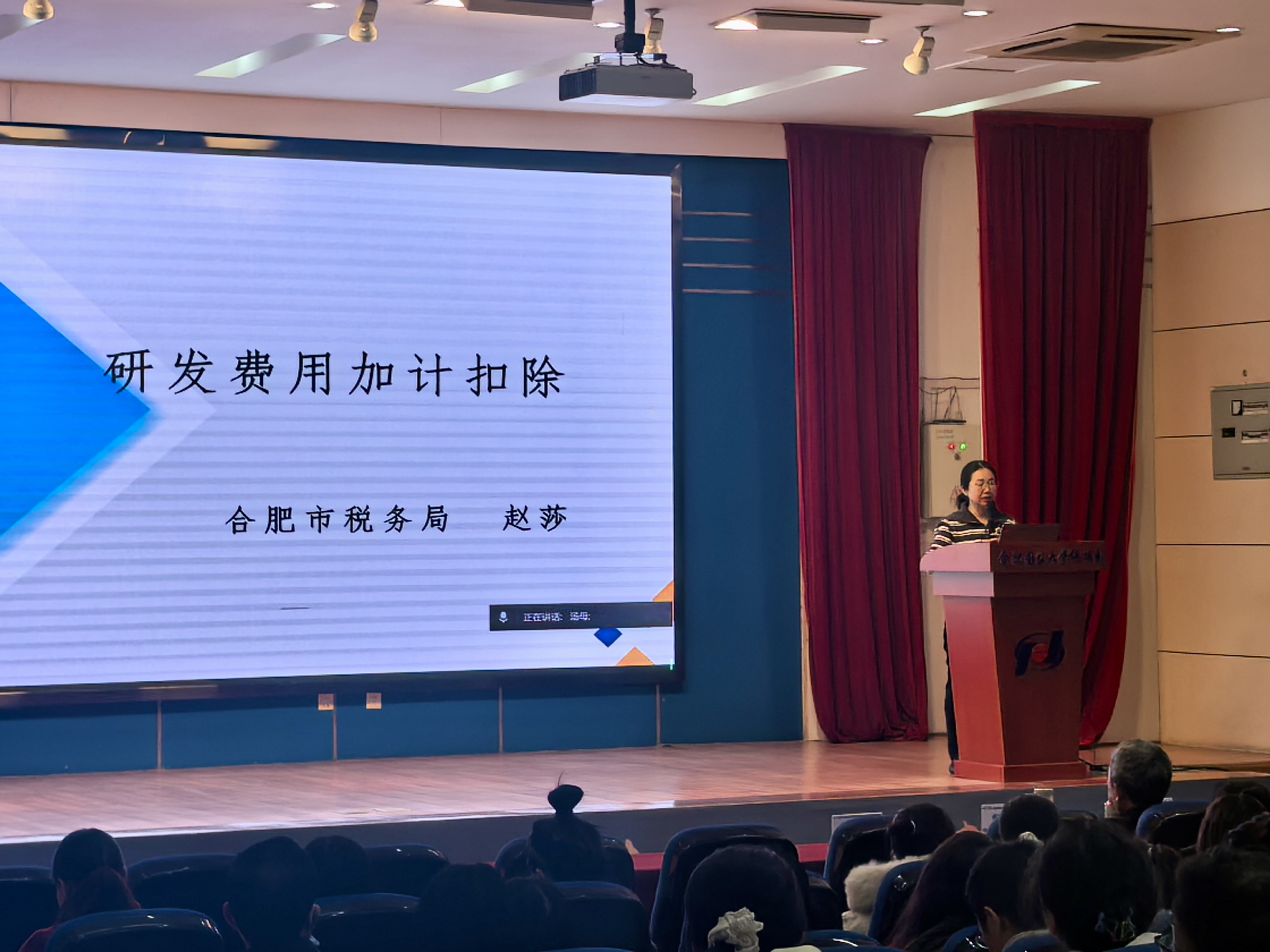 培训活动上,安徽辰龙税务师事务所解正安所长对高企研发费用账务处理以及企业在高企申报中的财务、税务重点关注问题进行了重点讲解;国家税务总局合肥市税务局赵莎处长对研发费用加计扣除相关政策以及后续管理作了详细宣讲。本次培训会内容兼顾理论性和实操性,具有较强的指导性,为园区企业更准确核算研发费、合规享受加计扣除优惠政策、提升高新技术企业申报成功率打下了坚实基础。