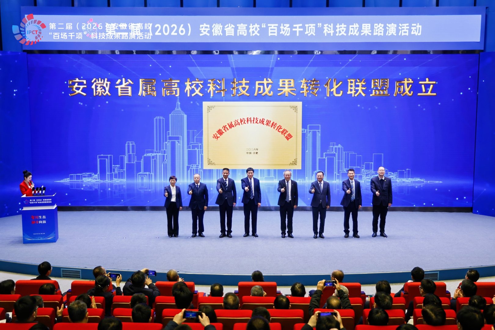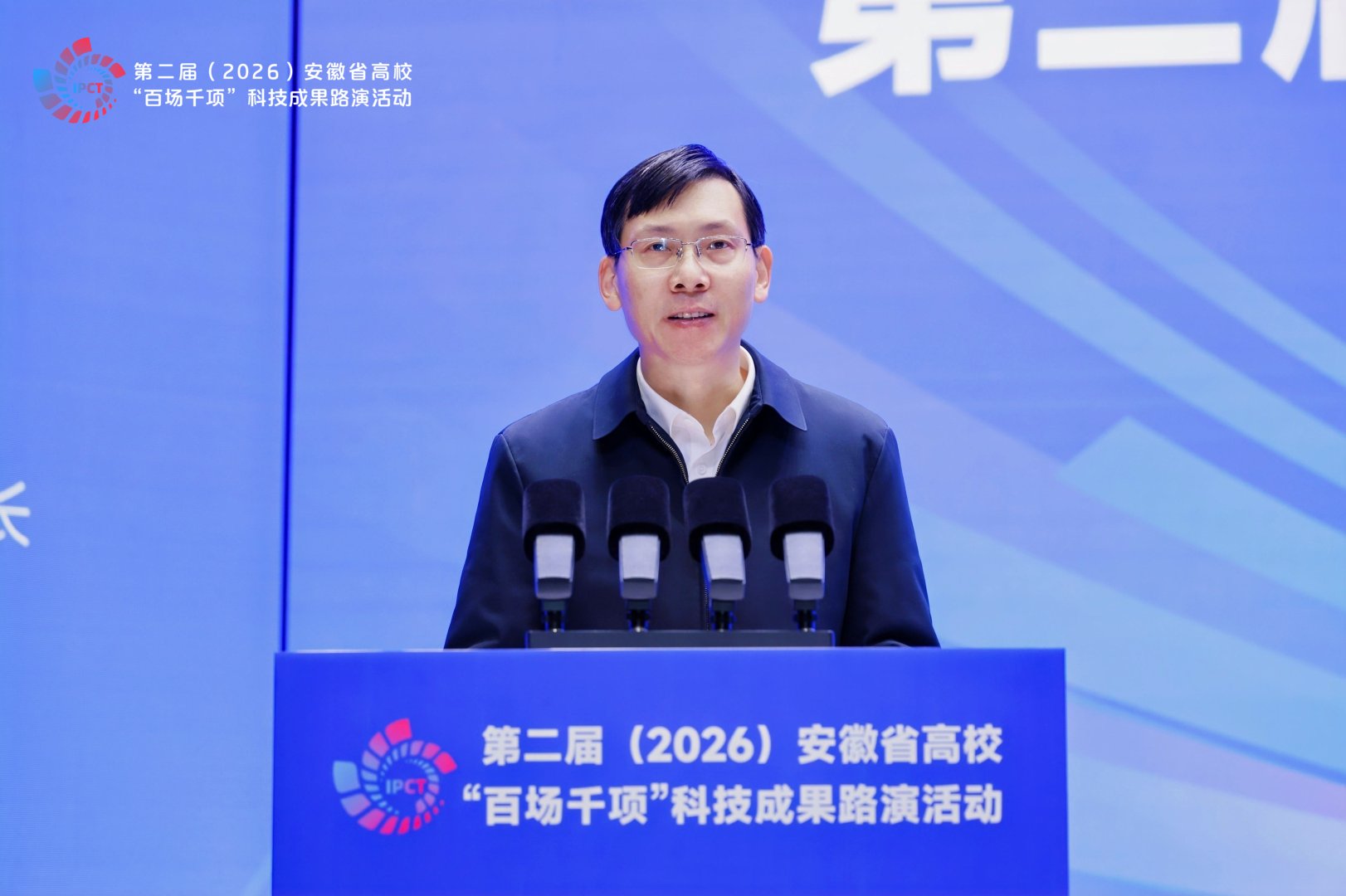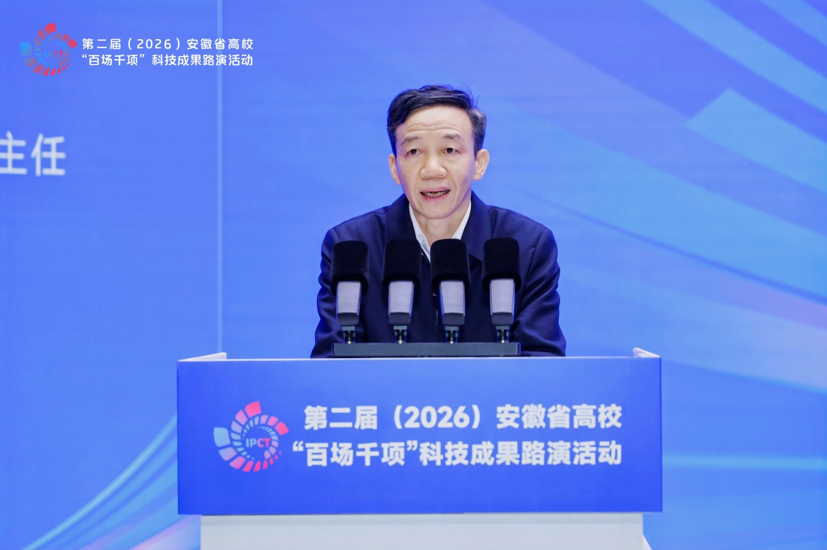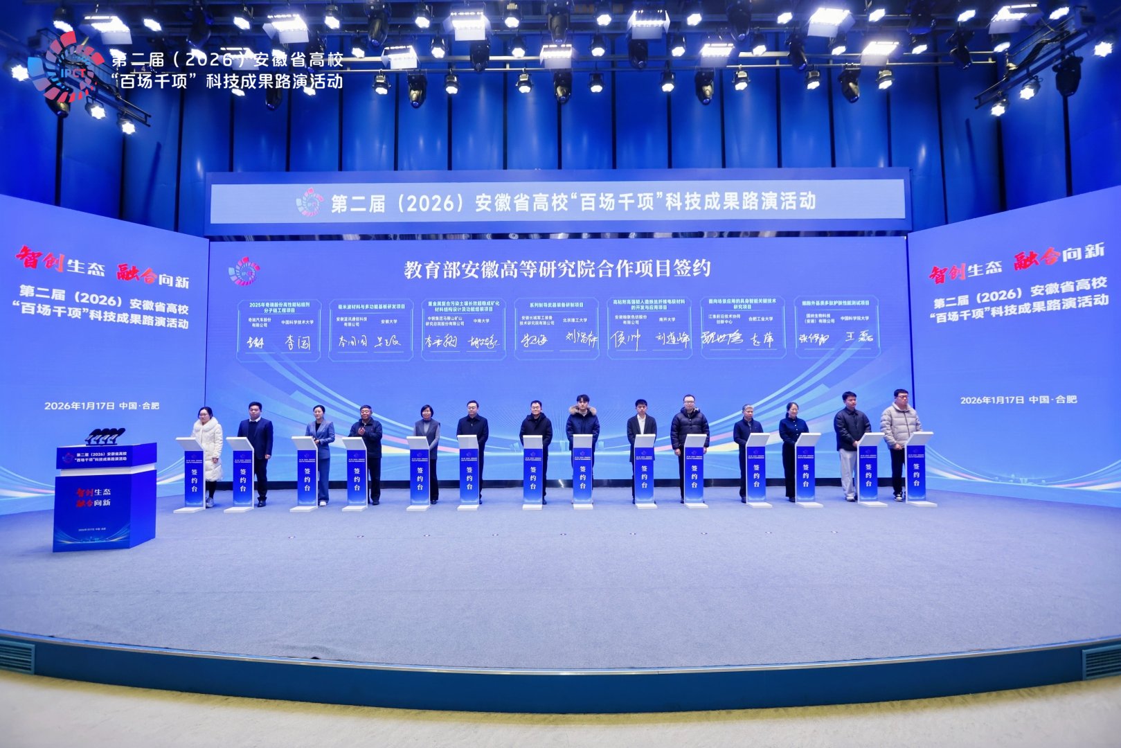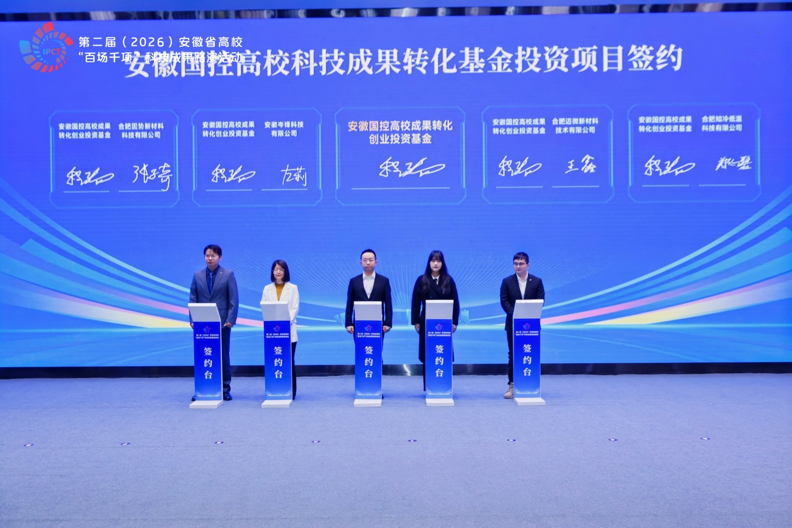 2026年1月17日,第二届安徽省高校“百场千项”科技成果路演活动在合肥隆重举行。教育部科学技术与信息化司重大项目与高新技术处处长刘法磊,省委教育工委书记、省教育厅厅长钱桂仑,省工信厅党组成员、副厅长蒋晨捷,省国资委党委委员、副主任吴明分别致辞。安徽国控集团党委书记、董事、总经理虞建斌,省委教育工委委员、省教育厅副厅长刘业勋,省科技厅党组成员、副厅长陈龙胜,安徽国控集团党委委员、副总经理程红波出席活动。清华大学、哈尔滨工业大学、上海交通大学、南京大学、浙江大学、西安交通大学、同济大学等省外19所著名高校,省内30多所本科院校主要领导,80余家省属、民营企业负责人,40多家金融投资机构及科研院所代表参会。